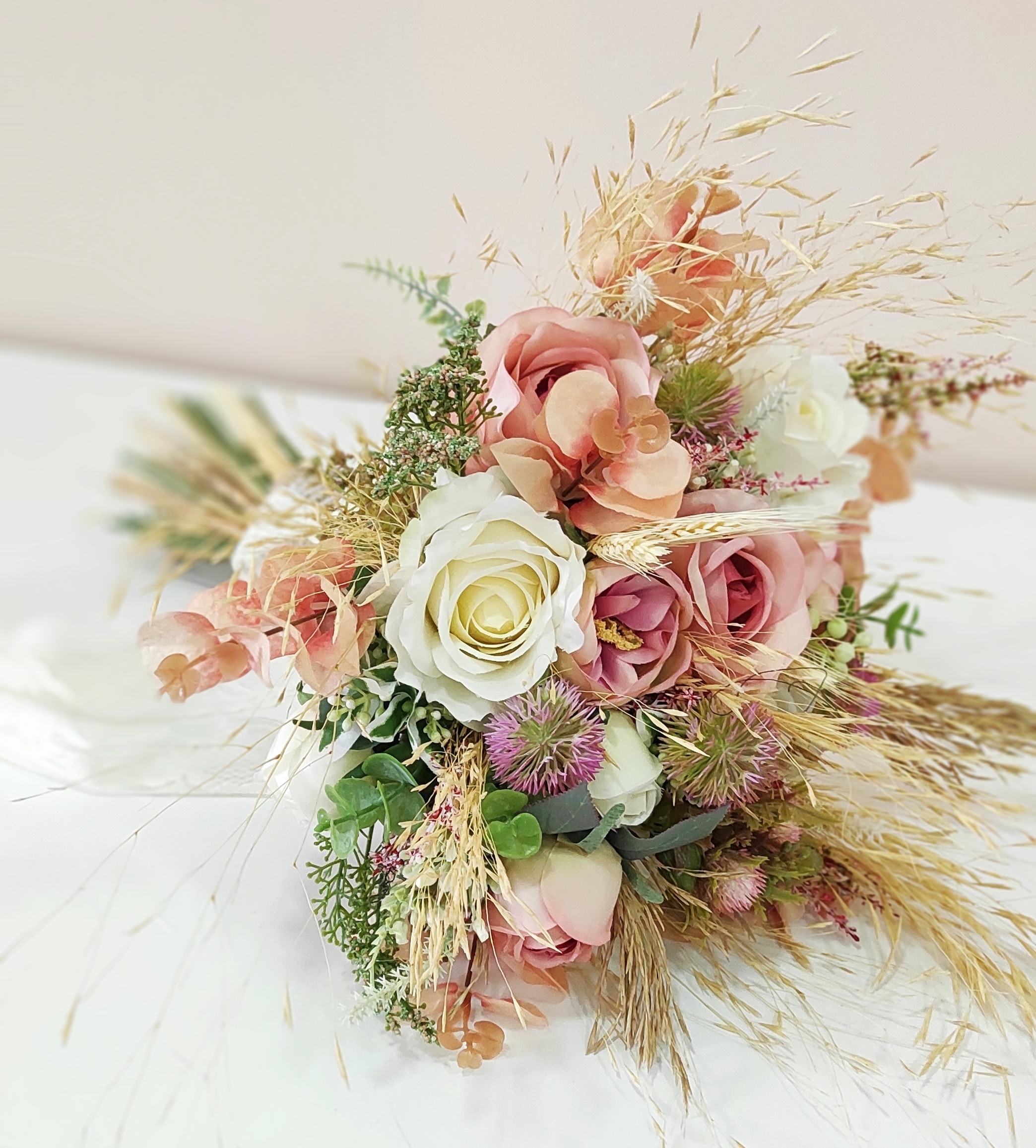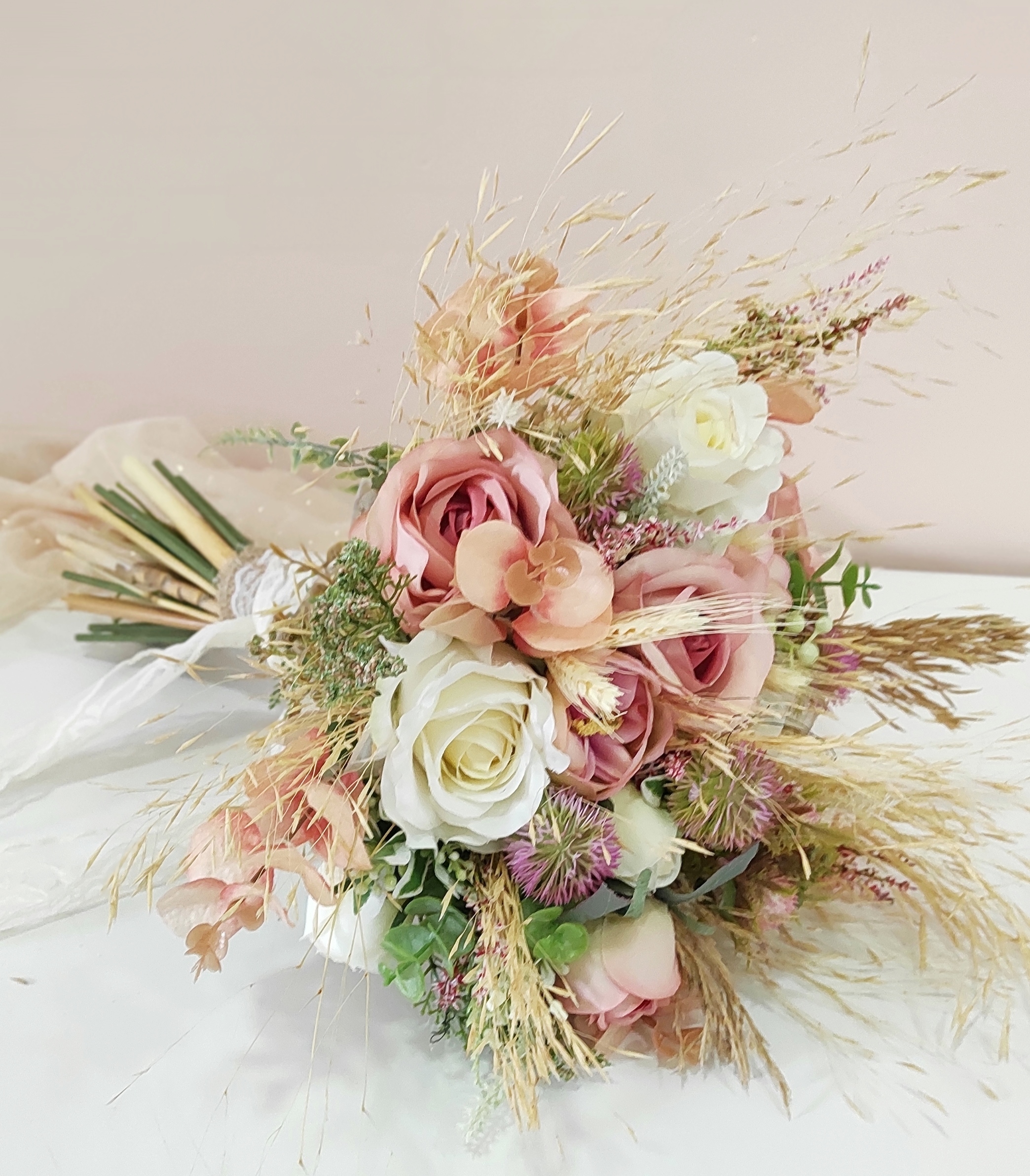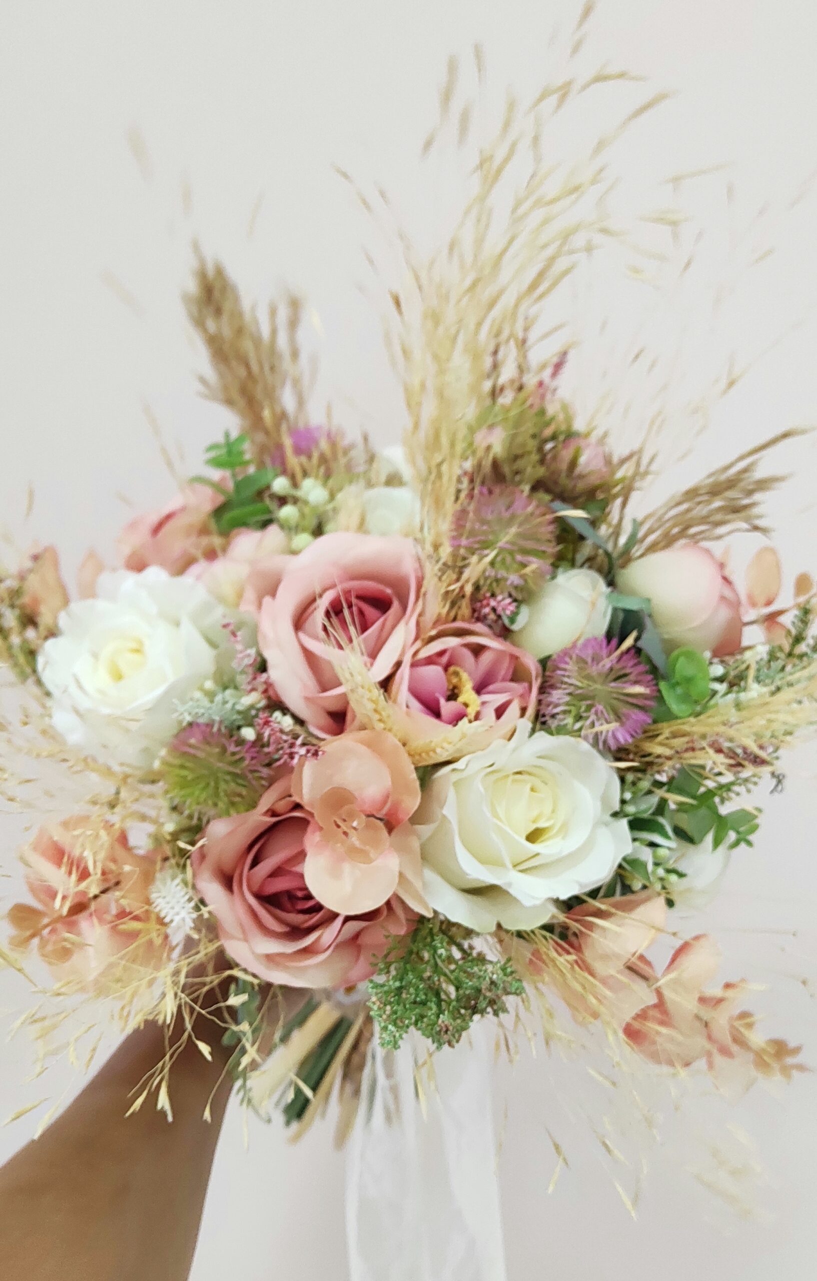 Buquê de Noiva Boho Rose Formato desconstruído,na paleta de cores rose com champanhe . Perfeito para casamentos diurnos e ao entardecer. Confeccionado com flores secas, permanentes e desidratadas. Perfeito para uma noiva moderna , despojada e que quer um toque mais informal para sua cerimônia. Nosso diferencial é proporcionar um buquê único para cada noiva, e por se tratar de um produto artesanal , os buquês nunca serão uma cópia da foto podendo ocorrer algumas variações, mas sempre manteremos a proposta inicial apresentada.